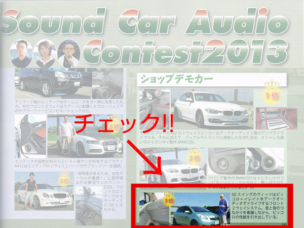 カーディオマガジンにヨーロピアンサウンド・カーオディオコンテスト2013でショップデモカー部門にて3位受賞した弊社のデモカーが掲載されました。