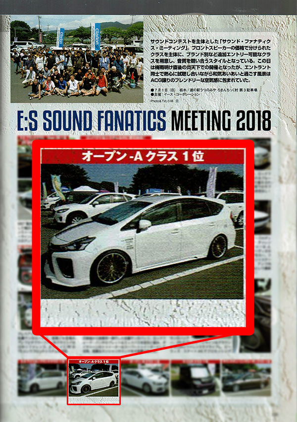 カーオーディオマガジンに イースサウンドファナティクスミーティング2018 ・オープンクラスにて第1位を受賞したお客様のプリウスαが掲載されました。