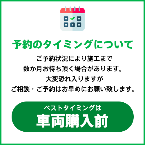 その他、車検、板金、内外装のカスタムやTVキャンセラー・AVインターフェイスなど、アフターパーツについても是非ご相談ください。